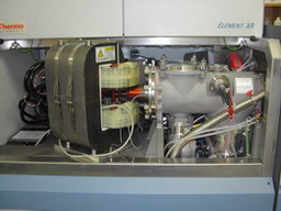 製造廠商:Thermo-Fisher Scientific Inc.型號:Neptune Plus偵測器:9 Faraday Cups/1 SEM/2 CDD electron multipliers特殊裝置:Virtual Amplifiers/Zoom Optics/RPQ/10^10 and 10^12 resistors啟用時間:2015年2月測量元素:Li, B, Mg, Ca, Fe, Ni, Cu, Zn, Sr, Mo, Cd, Nd, Hf, Pb, Th, U進樣系統: Stable Sample Introduction dual quartz chamber/ Aridus II/ APEX-Ω